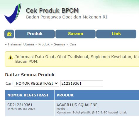 PESAN SEGERA 1 BOTOL AGARILLUS SQUALENE HANYA